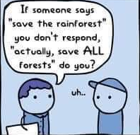 Their argument is flawed in that my response totally would be to say “All forests matter” to a protester to save the rain forest if their solution to cutting down the rainforest is to burn down all other forests on earth - which is comparable to what BLM is doing but with race divisions. Another example: I would respond “actually, all oceans matter” if somebody’s solution to the Atlantic Ocean’s sea level rising was to dump all the water into the black sea and flood several countries. The author trips himself up in his original post when he says that it “doesn’t mean that we think the other forests have no value” - which, ironically, is how the BLM organisation treats the livelihood and relations to other races: worthless. The point being that a major part of the conservative backlash towards BLM as an organisation is their attitude towards other races and their seeming inability to actually follow through in their promise that they simply want all lives to matter equally. If BLM wants my confidence back that they are a simple, honest organisation focused on equality, they should start by publicly opposing affirmative action in all forms and remove the sections from their manifesto which state that whites should be “giving up property for black families”. Until they make these fundamental changes to the things that their organisation believes in, you are going to keep hearing this retort to your protesting - so I’d get it done sooner rather than later, if I were you.